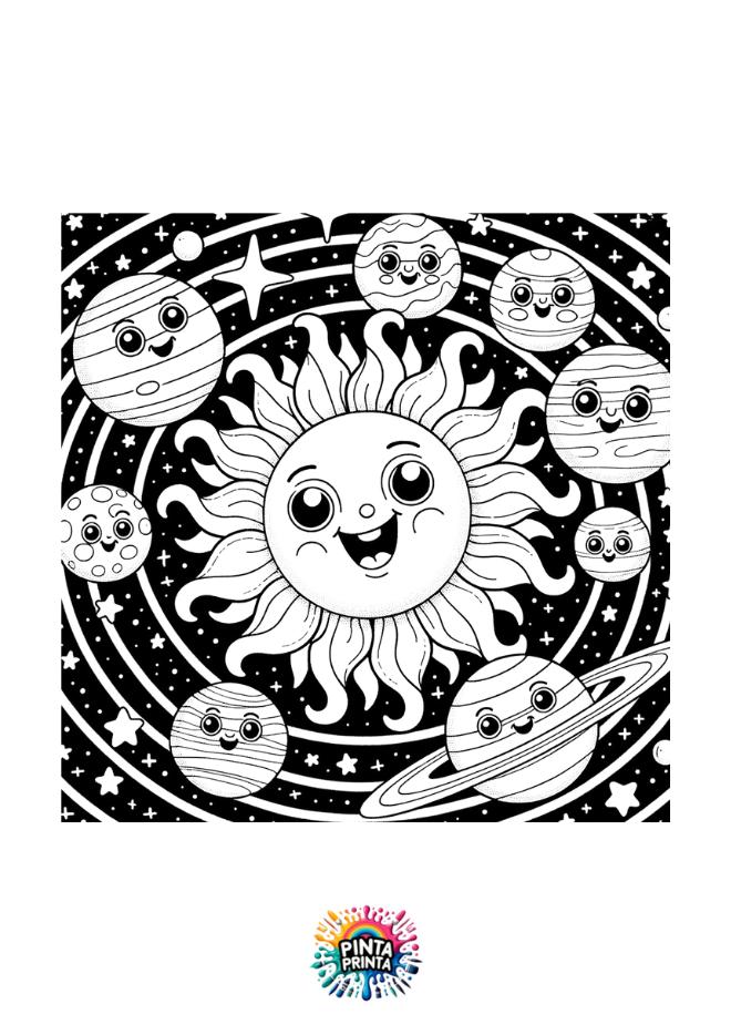 Descárgate e imprime este dibujo del sistema solar, ideal para que los pequeños artistas den rienda suelta a su imaginación y colores.